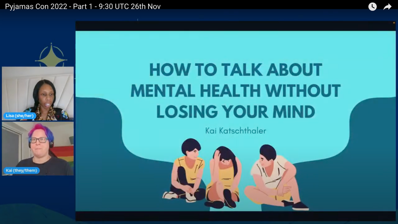 I enjoy giving talks (predominantly about mental health-related topics) and enjoy hosting/emceeing conferences and events. I’ve also recently started a livestreaming series called “New Year, New Skills”, where my guests and I talk about core skills that help people in tech gain confidence and further their careers. I’ve linked previous episodes below, so check those out!